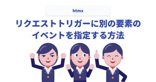 こんにちは。エキサイトでデザイナーをしている齋藤です。 今回は、htmxのリクエストトリガーに別の要素のイベントを指定する方法をご紹介します。 htmxとは 実現したいこと hx-triggerのfrom:*で別の要素のイベントをトリガーに指定できる まとめ 参考文献 …